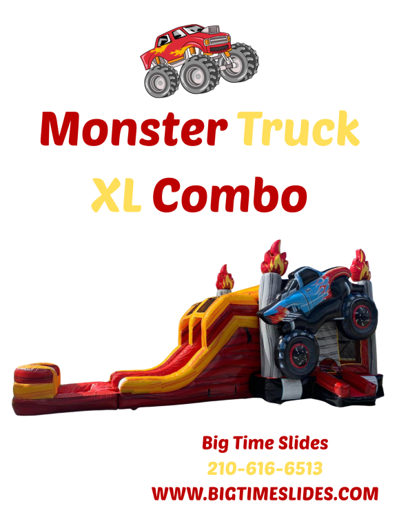 Monster Truck XL bounce house w/slide combo (wet/dry)