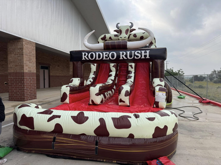 The 16’ Rodeo Rush double lane slide is perfect for all ages. It has 2 sliding lanes. This unique water slide is full of fun with its 16 ft. high climb and large drop into the huge pool. It can be used wet or dry.