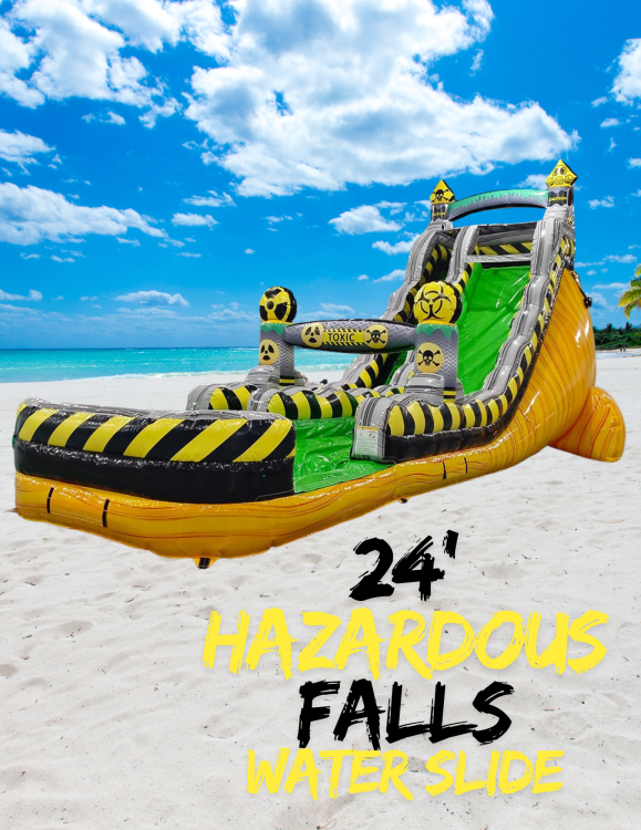 Feel the THRILL as you race down the 24' Hazardous Falls water slide! This 24' water slide will captivate your guests with a fun and exciting ride. It includes an extended run-out to the pool. Not only does it look amazing, it is super fast as well!